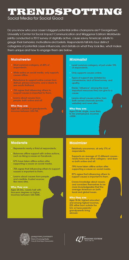 IInfographic from Georgetown Center for Social Impact Communication based on their recent research to profile who is most likely spread the word about your cause – and how.