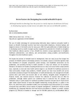 Atanu Garai. 2012. Seven factors for designing successful mHealth projects. XRDS 19, 2 (December 2012), 16-19.DOI=10.1145/2382856.2382865 http://doi.acm.org/10.