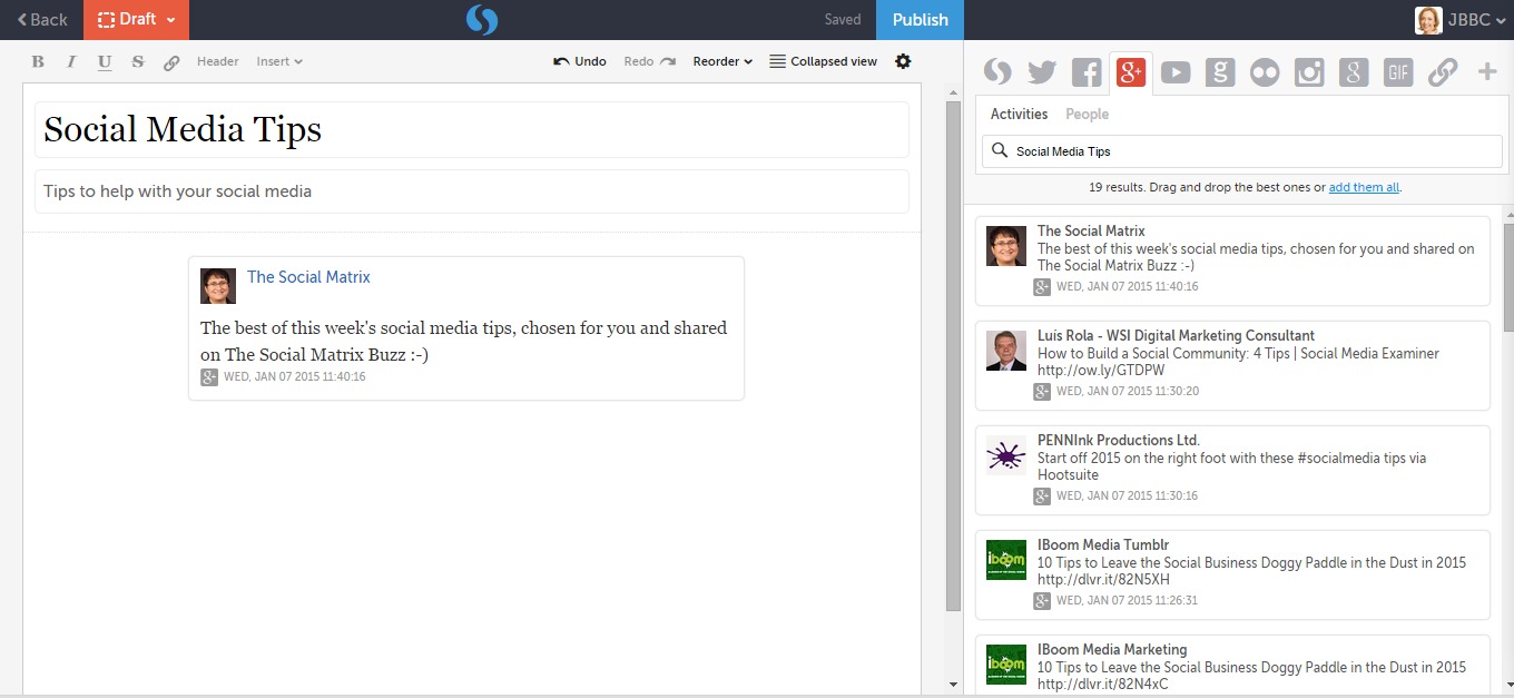 If you would like to see some examples check out my profile at: https://storify.com/JBBC