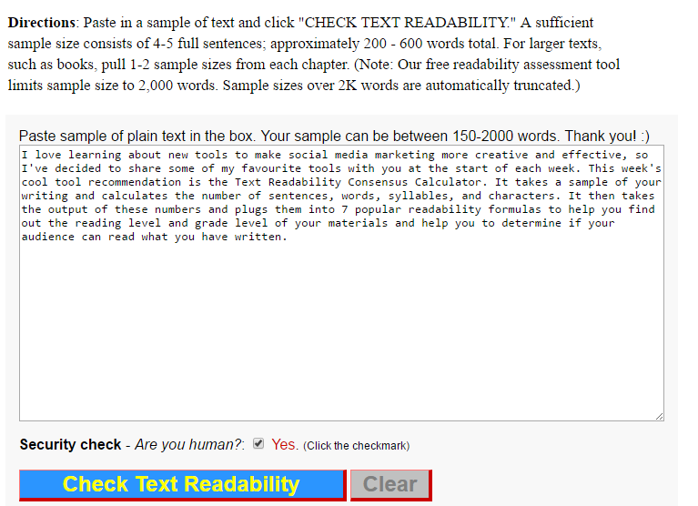 This week’s cool tool recommendation is the Text Readability Consensus Calculator. It takes a sample of your writing and calculates the number of sentences, words, syllables, and characters. It then takes the output of these numbers and plugs them into 7 popular readability formulas to help you find out the reading level and grade level of your materials and help you to determine if your audience can read what you have written.