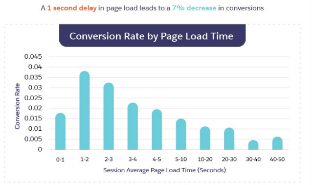 How fast your website loads is critical — a good site will load in 2 seconds. Research shows that a single-second delay in site load time can reduce your conversions by 7 percent.