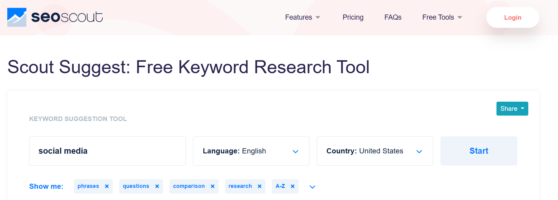 The cool tool recommendation this week is Scout Suggest – a free keyword research tool within the SEO Scout platform.