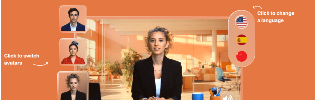 - Virtual Human Presenters: Choose from a library of AI presenters or create a custom one to resonate with your audience.