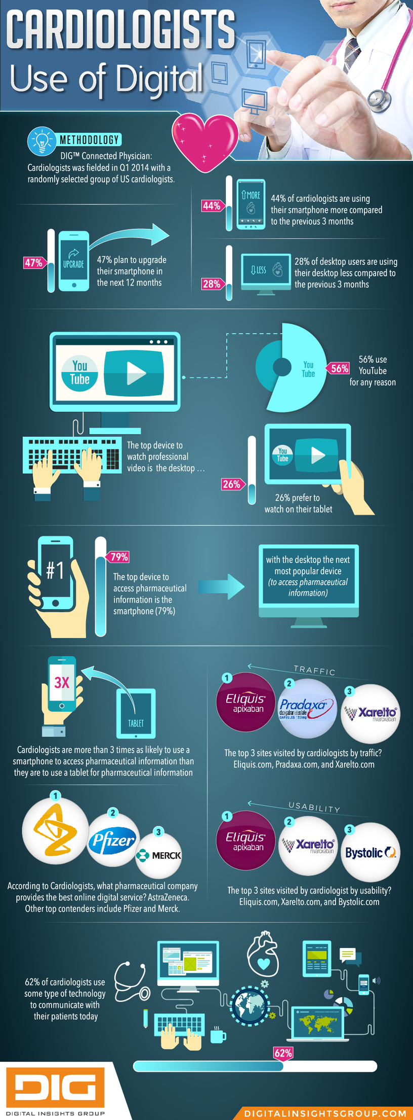 Which pharmaceutical company provides the best online services? According to this infographicfrom Digital Insights Group, cardiologists say AstraZeneca is No. 1, followed by Pfizer and Merck.