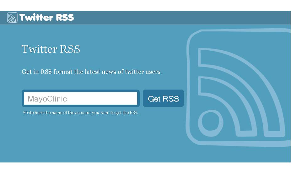 Enter the details of a specific Twitter account you have chosen. This brings up the RSS feed of their latest tweets.
